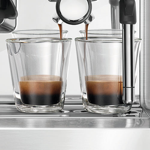 Full bodied coffee with rich and complex flavours is created using the ideal dose of 18g of freshly ground beans delivered by a professional style 54mm stainless steel portafilter.