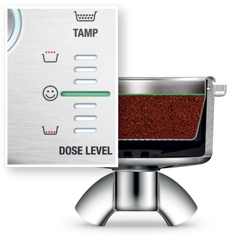 If your dose requires a bit more or a bit less, the intelligent dose system auto corrects, remembering the last dose and tamp outcome and adjusting it to ensure you achieve the perfect dose this time.